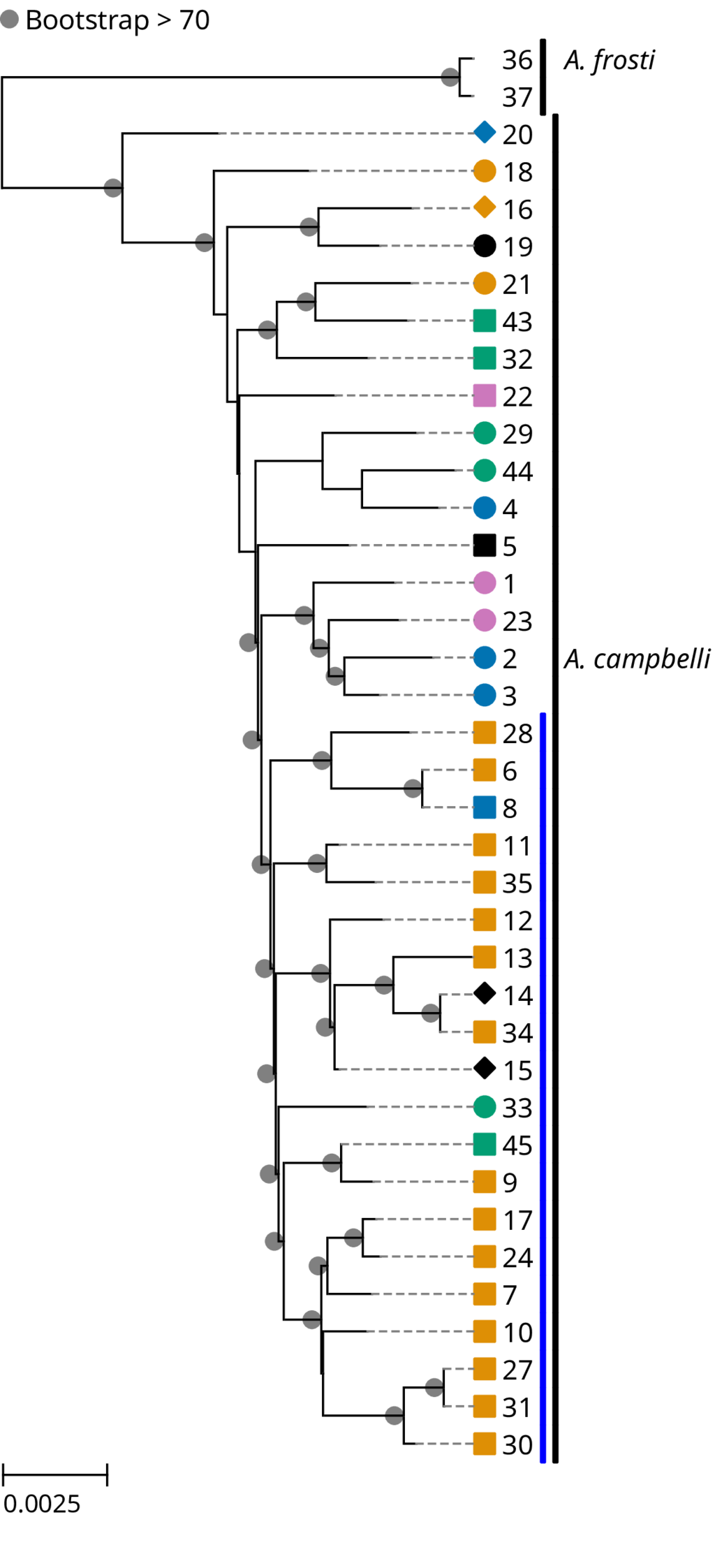 To estimate the phylogenetic relationships among the sampled Abronia lizards, we used a maximum-likelihood search in IQ-TREE (Wong et al., 2025).